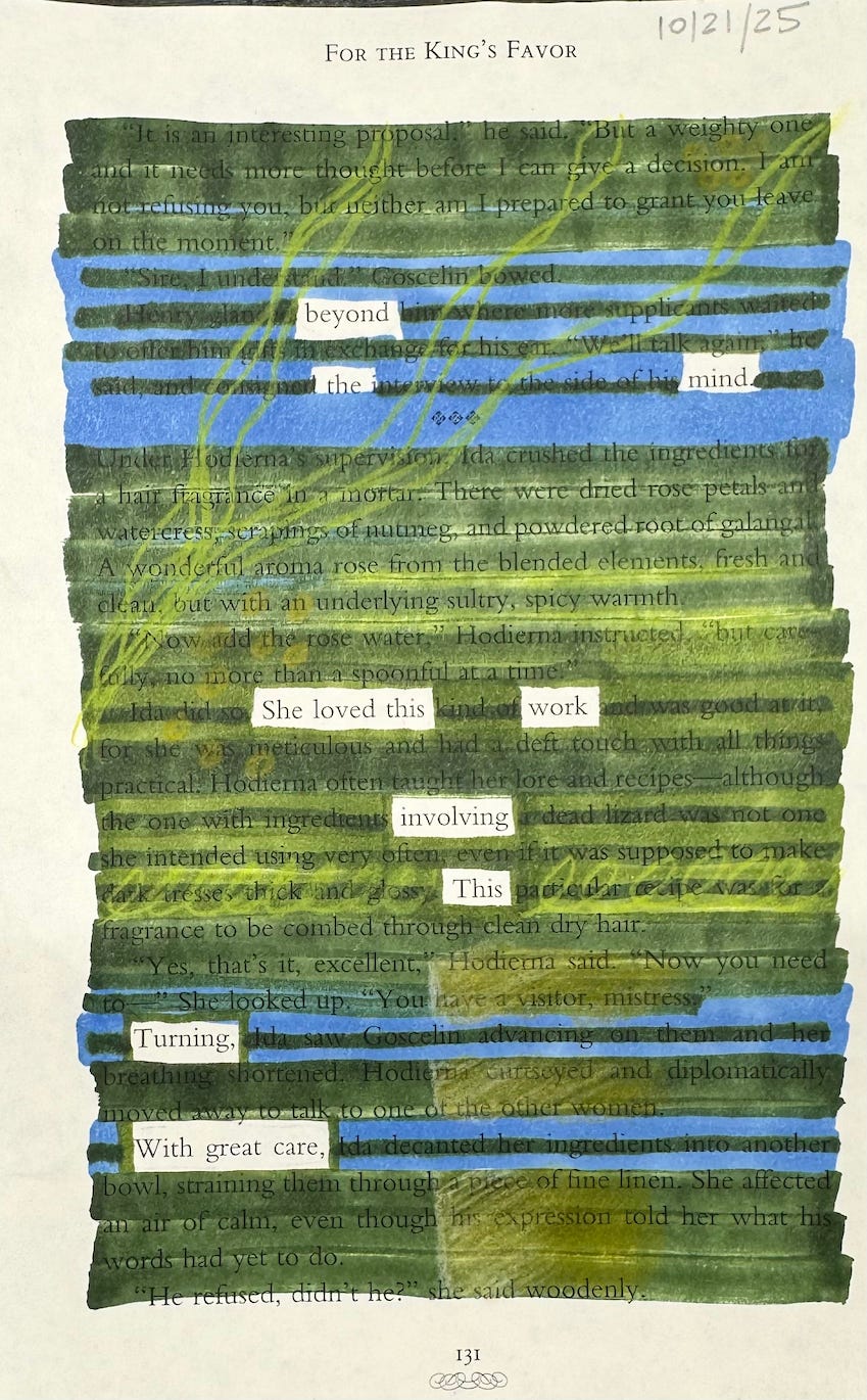 Using erasure poetry and Lectio Divina, I harvest words and phrases that connect me to my values and my voice.